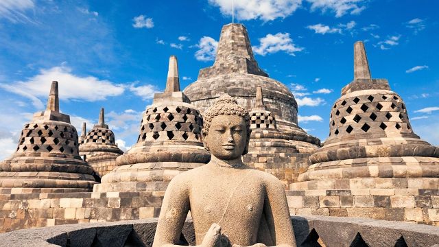 Orang Utans in der Region Medan. Kulturelle Schätze Yogyakartas. Lebendiges Treiben Surabayas. Spirituelle Ruhe Ubuds. Tauchen mit Schildkröten und Haien. Größte Komodowarane der Welt. Inseln: Sumatra, Java, Bali, Nusa Lembongan, Gili Trawangan, Gili Air, Flores. Neun Touren: z. B. Komodo Inseln, Schnorcheln Gili Inseln. Themen: Natur und Kultur. Dauer: 28 Nächte.