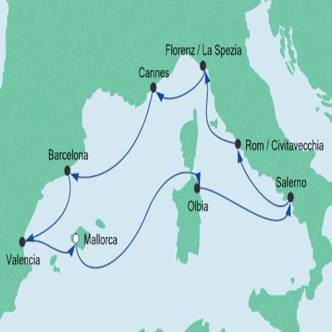 Mit der AIDA Kreuzfahrt Mediterrane Highlights 2 erleben Sie Olbia, Neapel, Rom, Cannes, Toulon, Barcelona und Mallorca. Auch als Kreuzfahrt und baden. Anfrage